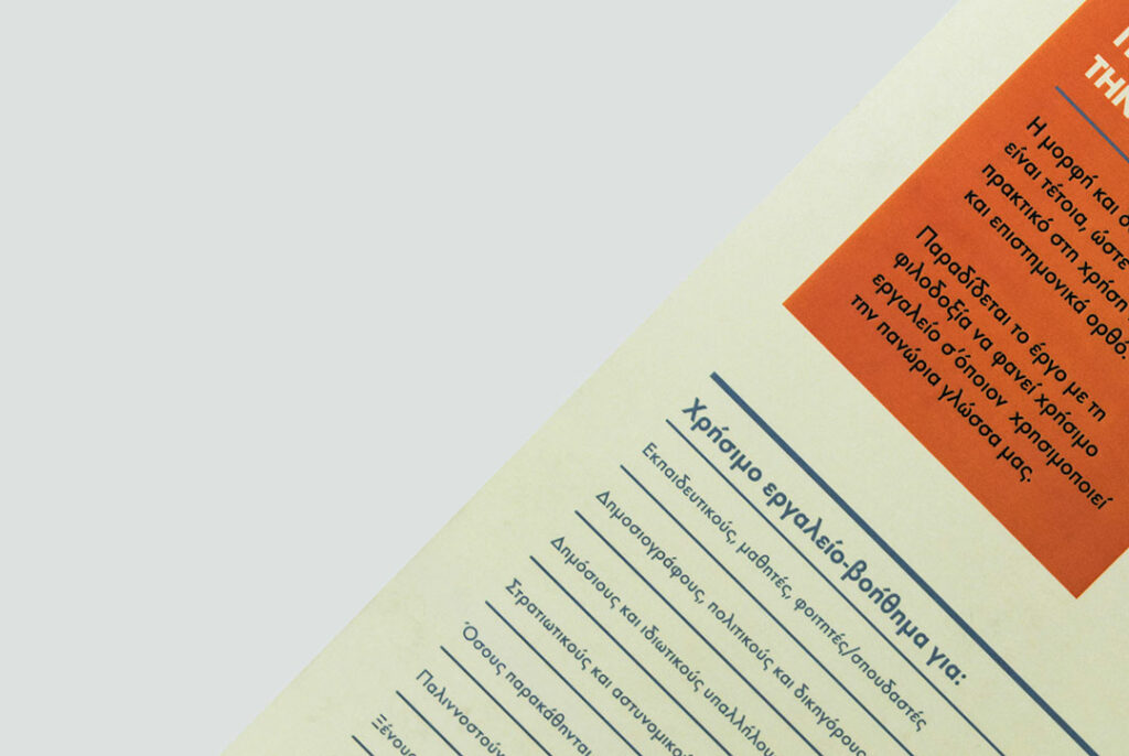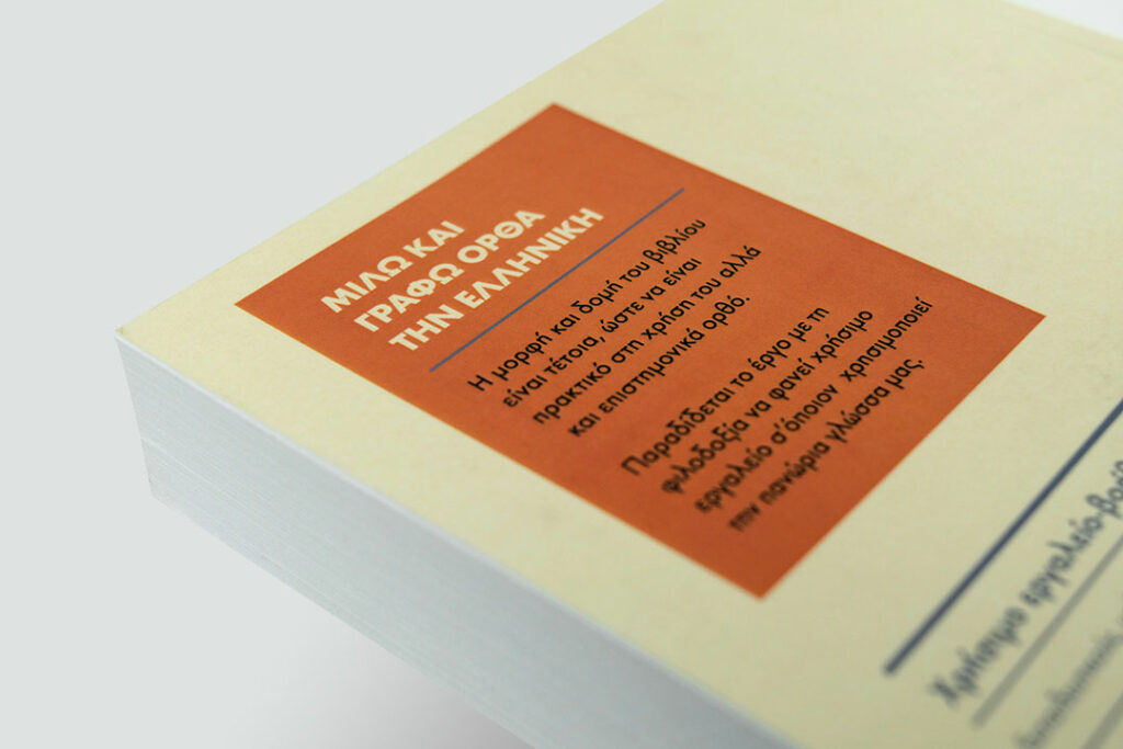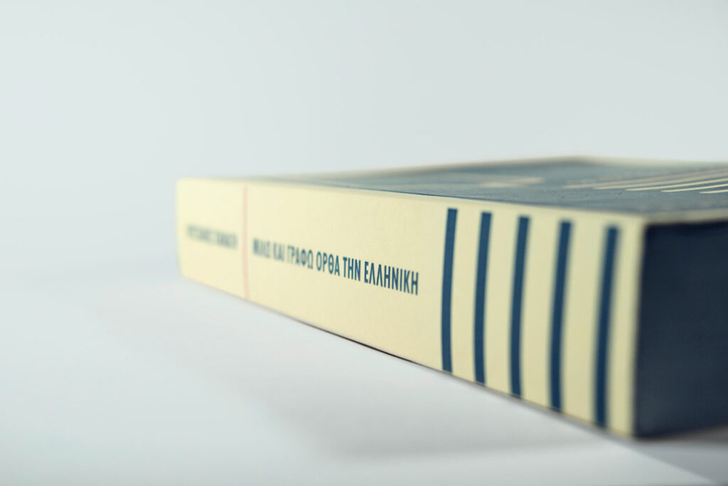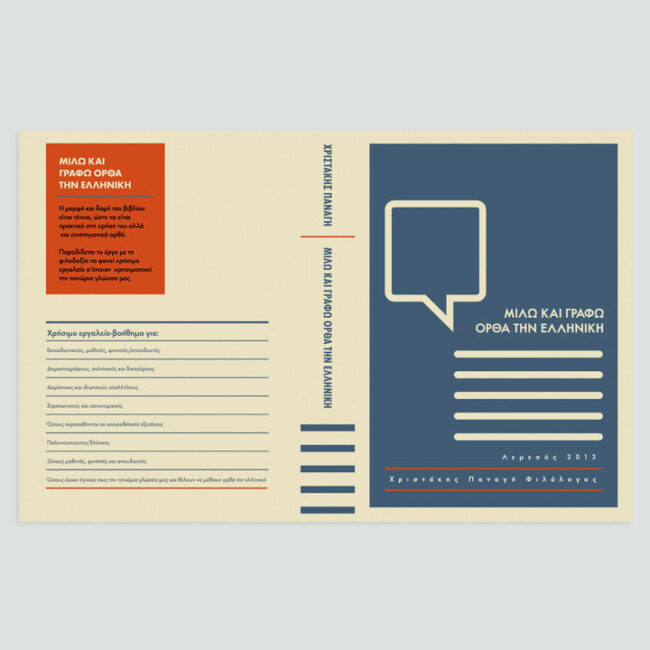 Having the complete freedom by the client to design sounds like a dream for every designer. But also it can be intimidating since the absence of directions can lead to endless hours of trying to apply all the possibilities that you laid on the table.It can be even more intimidating if the client is your Greek language mentor. Aesthetic ambiguity was intended to be carried by the signifiers; e.g. the 7 white lines represent the stripes of the Greek flag and at the same time the writing. Obvious connotations were also used to communicate with a broader market, e.g. the orange details for the Cypriot authorship. Moreover each original printed copy of the book is signed by the author Mr.Christakis Panayi and includes a preface by the Minister of Education and Culture of Cyprus. The cover design has been awarded with a Bronze Pygmalion Award in the Graphic Design category at the 2014 Pygmalion Awards organized by the Cyprus Creative Club.